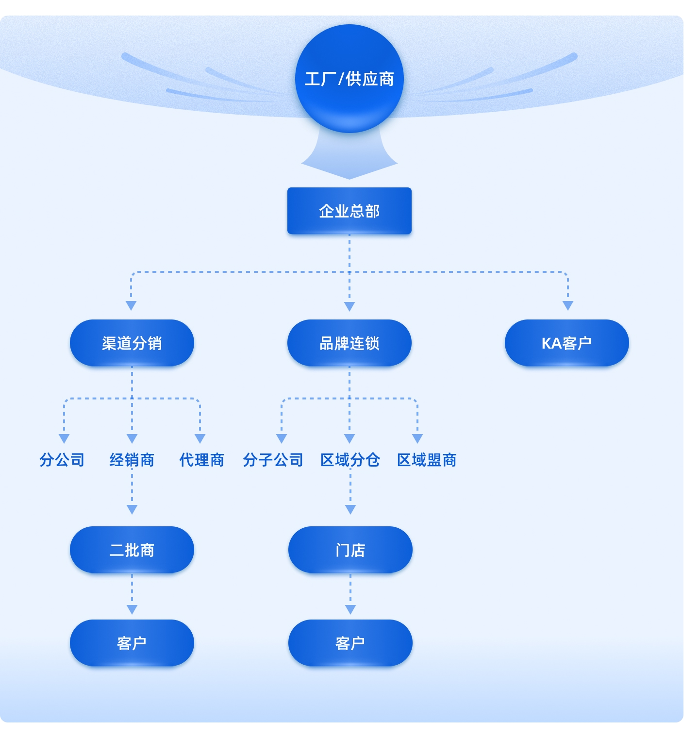 連鎖品牌經營企業、品牌廠商多層級渠道分銷企業、全國/區域性供應鏈貿易平臺